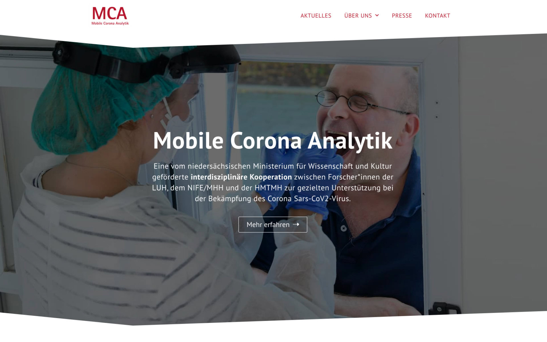 Die MCA-Website wurde 2020 in Zusammenarbeit mit dem „Institut für Technische Chemie“ und dem „Institut für Journalistik und Kommunikationsforschung“ umgesetzt. Für das Projekt sollte eine kleine Website erstellt und gehostet werden, auf der alle Projektpartner Informationen und Updates zum Projekt veröffentlichen können. Mit einem CMS (Content-Management-System) können Redakteur:innen die Website selbstständig mit Inhalten füllen oder bearbeiten.